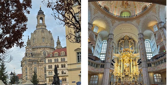 Treffpunkt war kurz vor 12:00 Uhr bei der Frauenkirche. Auf eine Andacht folgte ein kurzes beeindruckendes Orgelkonzert und eine Einführung in die Geschichte der Frauenkirche und deren Wiederaufbau.