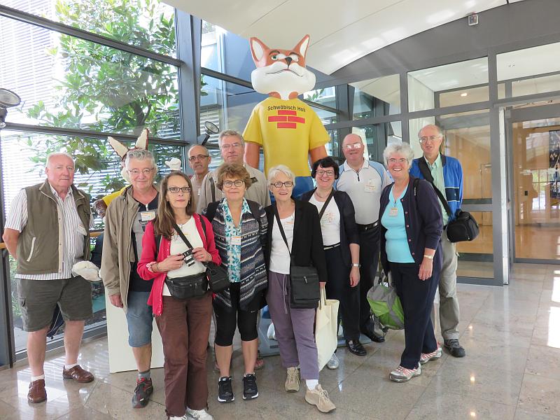Besichtigung des Musterhauses, das die Grundwerte der Firma darstellt. Natürlich haben wir ein Gruppenfoto gemacht mit dem Fuchs, dem Symbol der Bausparkasse.