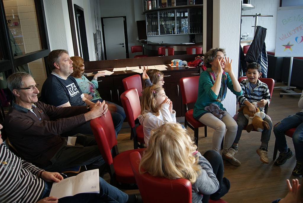 Der Besuch im Eifel-Zoo war der Höhepunkt der Woche und es gab sogar einen Bären, sowie Tiger und Löwen. Im Zoo fuhren wir mit einer kleinen Bahn in den Wald und konnten dort die Tiere füttern. Die Begeisterung war groß und im Kurs am nächsten Tag wurden die Tiere in Bild und Ton von den Kindern und Erwachsenen in beiden Sprachen vorgestellt und in Spielen und Zeichnungen nachbereitet. Die Geschichte „Heut gehen wir auf Bärenjagd“ war ein toller Spaß für Groß und Klein.