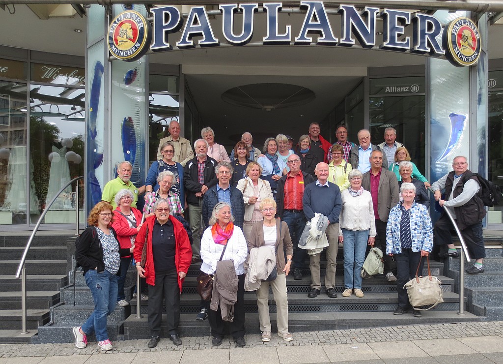 Bevor der Rückweg mit Nerobergbahn, Bus und S-Bahn wieder zurück nach Mainz ging, haben wir uns im Gartenkaffee „Am Turm“ bei Kaffee und Kuchen erst etwas erholt. Wieder in unserer Unterkunft, dem IBIS-Hotel, angekommen blieb Zeit für einen Kleiderwechsel, bevor wir den Abend im Restaurant „Eisgrub-Bräu“ ausklingen ließen. Die Brauerei hat eine zünftige Einrichtung und gutes, deftiges Essen.