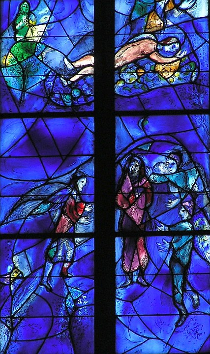 Der Gottesdienst endete mit dem „Feierlichen Einzug der Ritter des Johanniter-Ordens“ des Komponisten Richard Strauss, gespielt vom Bläserkreis. Danach erfuhren wir vom Gästeführer die außergewöhnliche Entstehungsgeschichte und die Darstellung der Ereignisse der biblischen Geschichte des alten Testaments auf den sechs Kirchenfenstern im Chorbereich. Monsignore Mayer war auch der Pastor der Gemeinde während des Wiederaufbaus der Kirche nach den Zerstörungen des 2. Weltkrieges. Sein Ziel war, ein Zeichen des Friedens und der Versöhnung zu setzen. Es gelang ihm in vielen Gesprächen die Vorbehalte des Künstlers Marc Chagall – der Jude war – zu überwinden. Als Ergebnis können wir heute ein in Deutschland einmaliges Kunstwerk bewundern.