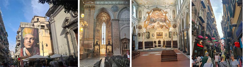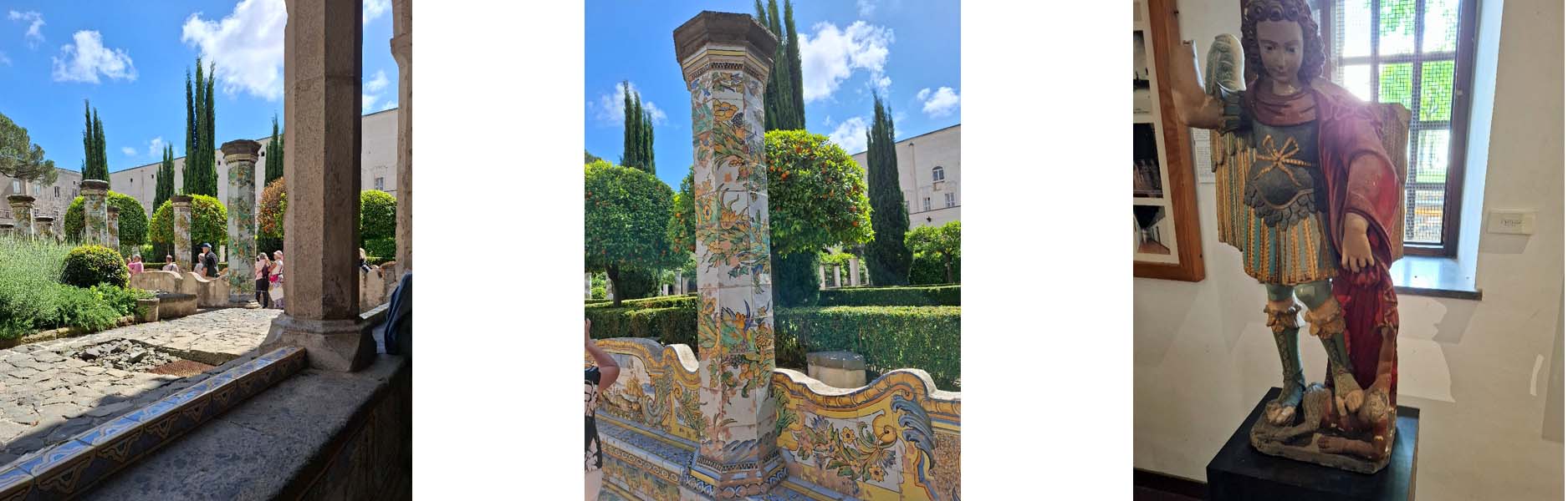 AOn Tuesday there was a guided tour of the Certosa di San Martino (baroque monastery complex with church) with museum. The way back was either by cog railway or on foot down the very steep hill. In the afternoon we went to the monastery complex of Santa Chiara, where we visited the cloister with flower-painted majolica (ceramic tiles) and the church.