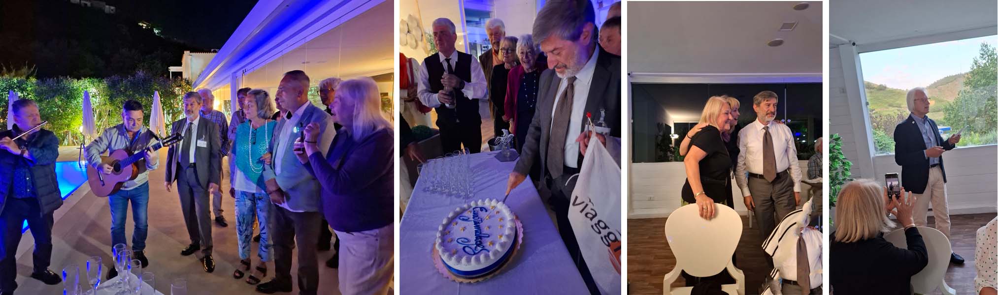For the ‘soirée amicale’, a dinner with sparkling wine by the pool and a ‘Eurojumelages cake’ awaited us, which was proudly cut by Franco to the accompaniment of guitar music.